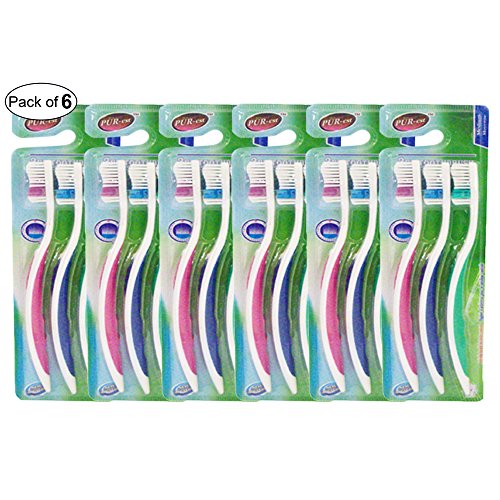 Purest Medium Toothbrush 3 In 1 Pack (Pack of 6)