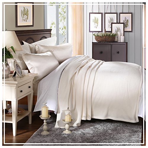 HYSEAS Coral Fleece Twin Size Plush Bed Blanket Ivory