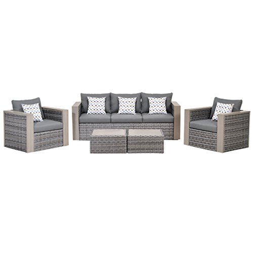 Save on Atlantic 5-Piece Mustang Wicker Conversation Set with Grey Cushions and more