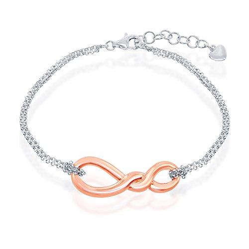 Sterling Silver or Rose Tone Infinity Twist 7+1" Bracelet